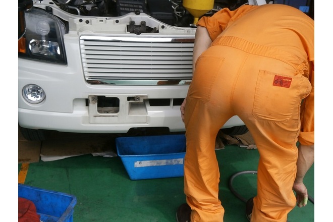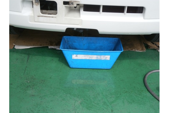 画像は昔は当たり前でした冷却水(クーラント)交換風景です