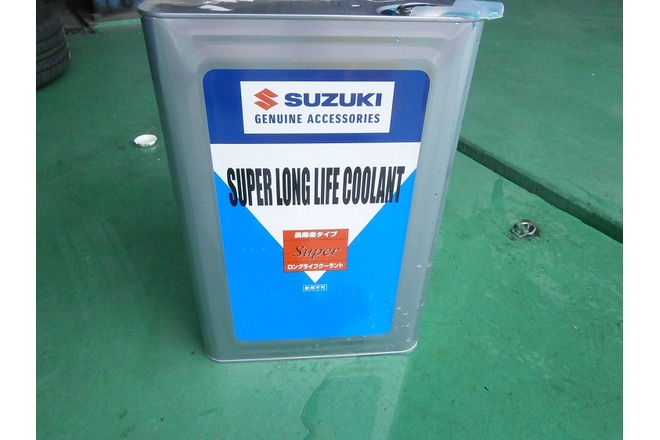 一応、弊社スズキ純正部品取扱店なので、スーパーロングライフクーラントも純正を使います。(ちなみにスーパーロングライフクーラント、バンは初回6年、後は4年毎ごとに交換します)![]()