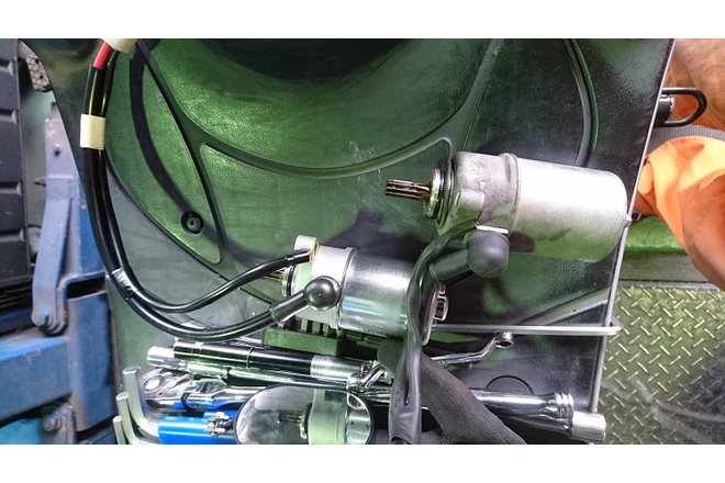 外観からは何がおかしいかわかりませんが画像下がおニューのセルモーターです