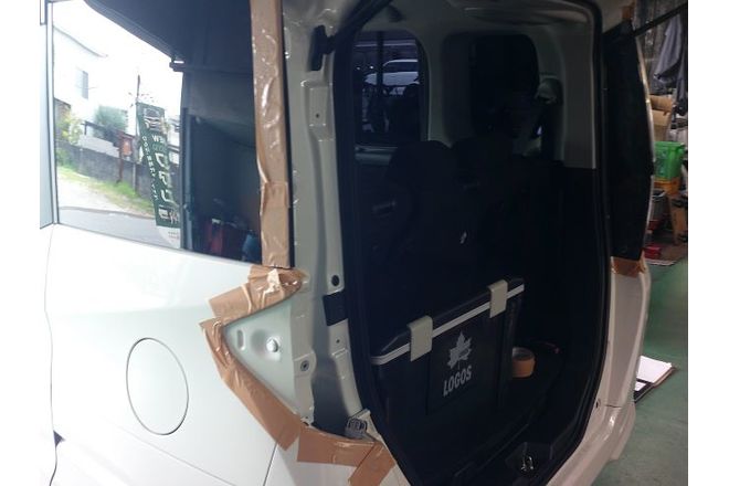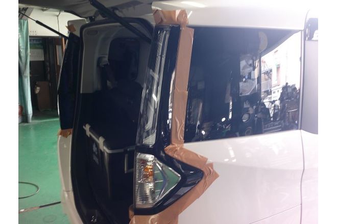 テールランプレンズはボルト2本とクリップで止まっているのでキズ防止のためマスキングをしてテールランプレンズを取り外していきます。