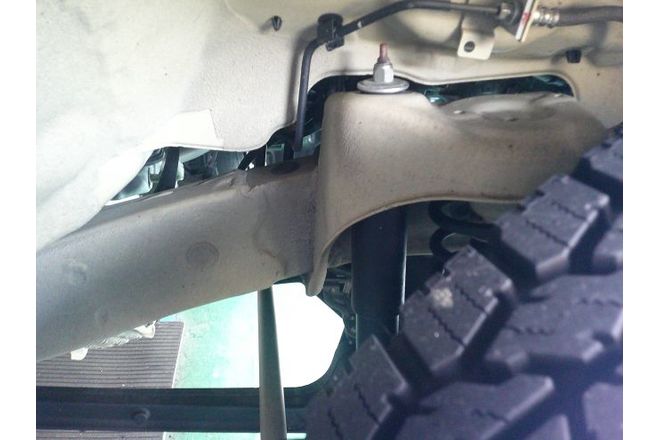 フロントのショックアブソーバーはナットとボルトで付いていて、