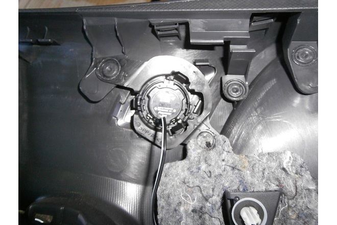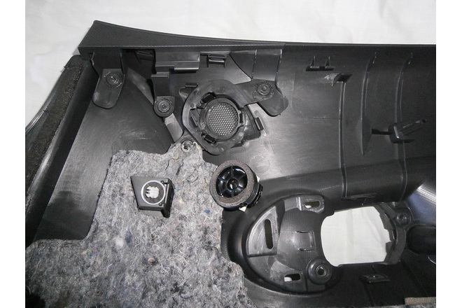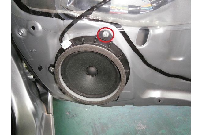 内張を外し、トヨタさん特有のリベット(赤丸)を破壊してスピーカーを取り外します。(別途費用)